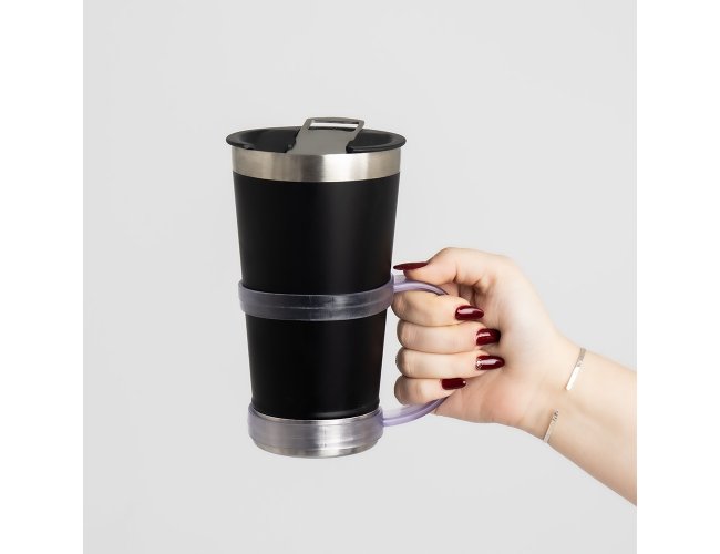 Alça feita de silicone, maleável e ideal para usar no copo que for consumir suas bebidas em qualquer ocasião.