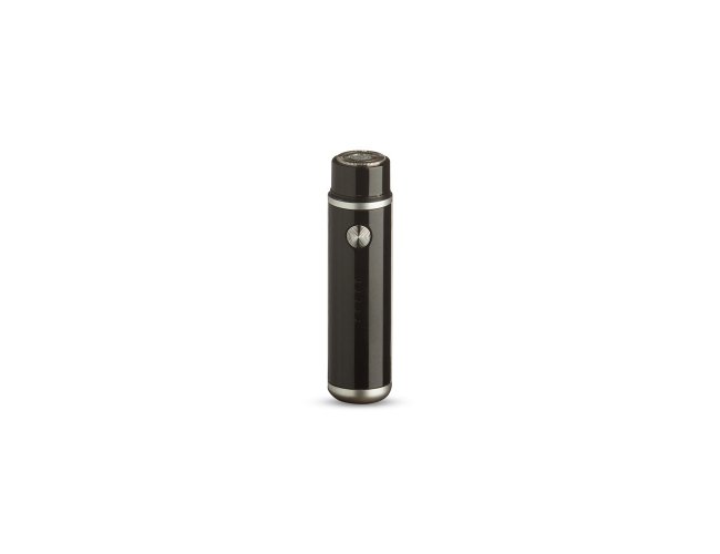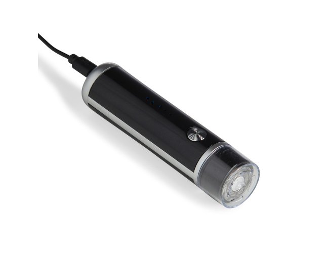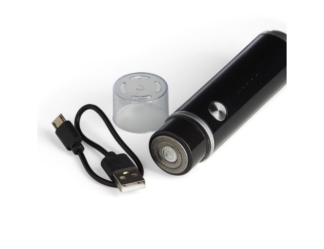 Aparador de barba elétrico recarregável. Possui status da bateria visível e botão antiderrapante para uma maior aderência ao toque. Acompanha cabo USB Tipo-C, escovinha para limpeza e tampa protetora.