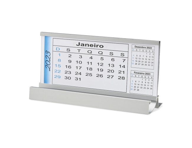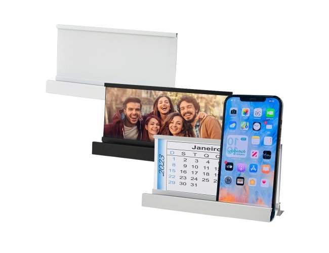 Base de alumínio para calendário ou foto, com suporte para celular. Obs.: Não acompanha calendário.