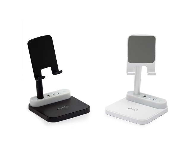 Com opções de carregamento via indução ou via cabo, nossa base é prática e funcional. Produzida em plástico com apoios antideslizantes, a base possui duas entradas Tipo-C, uma entrada USB e uma saída Tipo-C. Acompanha um cabo USB Tipo-C.