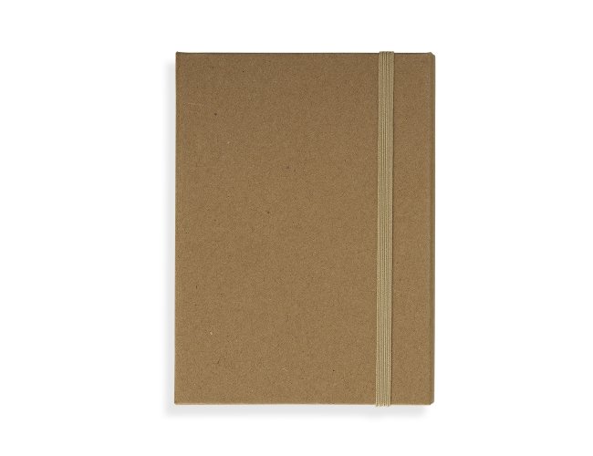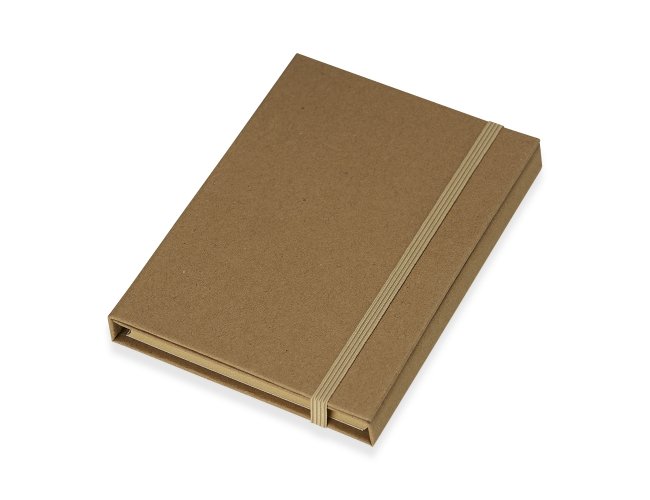 Bloco de anotações em papel kraft pautado em kraft, possui notas autoadesivas, compartimento para guardar anotações, uma régua em material plástico de 12 cm e caneta. Obs.: O bloco possui aproximadamente 70 folhas.