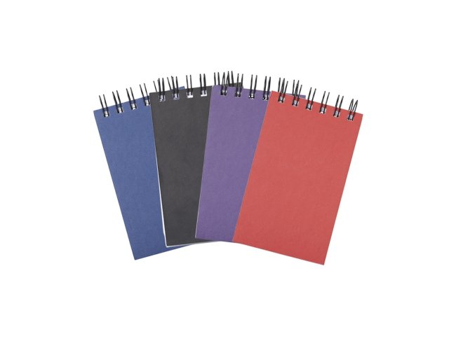 Bloco de anotações capa dura em kraft com wire-o. Contém aproximadamente 100 folhas sem pauta na cor branca.