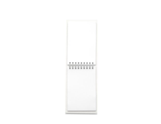Bloco de anotações com capa pet sublimática e trilho de ferro. Possui aproximadamente 100 folhas brancas sem pauta. Informações do fornecedor para sublimação: temperatura 200ºC, tempo 25/30 segundos.