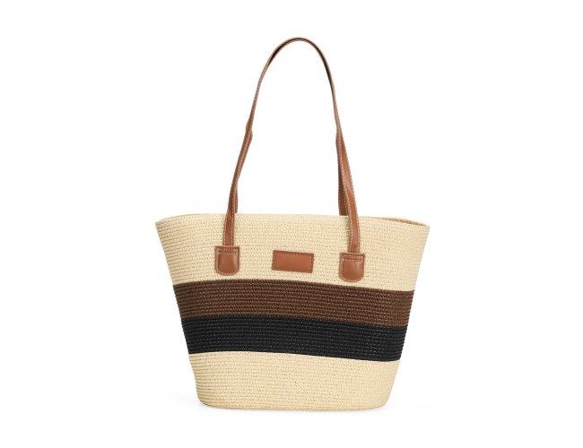 Bolsa em fibra biodegradável de celulose costurada com linha de nylon e fechamento em zíper. Possui compartimento interno com bolso compacto, além de alças e detalhes em couro sintético, incluindo plaquinha frontal costurada.