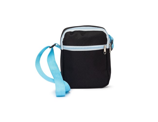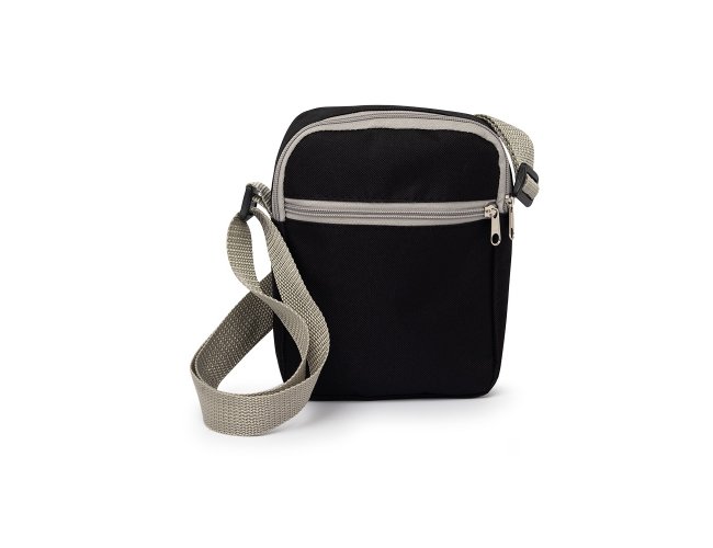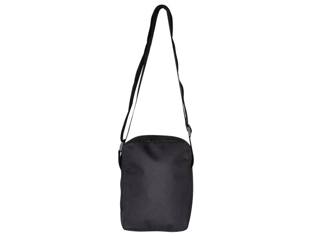 Bolsa de ombro em nylon com dois compartimentos, sendo o principal com bolso interno telado. Possui alça com opção de regulagem.