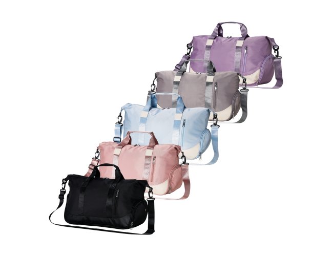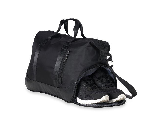 Contém bolso para encaixe em malas de viagem, bolso interno e acompanha alça transversal. Bolsa esportiva de 29 litros em poliéster à prova dágua com quatro compartimentos, sendo dois deles exclusivos para tênis e itens molhados.