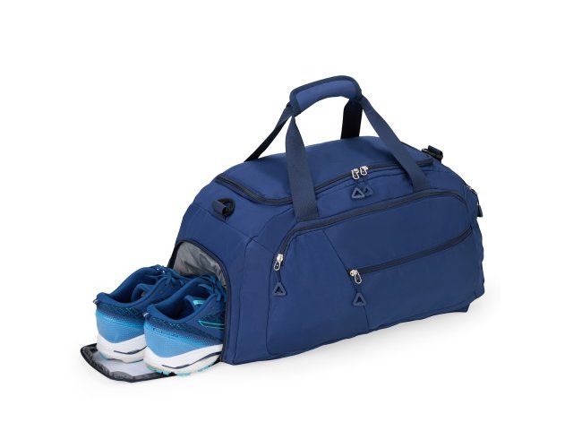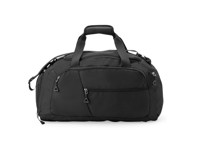 Esta é uma bolsa esportiva que traz a combinação de versatilidade e praticidade em um design destacado. Feita em Oxford resistente à água e com capacidade de 42 litros, ela conta com espaço de sobra para armazenar trajes e equipamentos esportivos graças aos seus 4 compartimentos principais amplos, incluindo um bolso lateral mais espaçoso para carregar objetos à parte de outros itens, como calçados ou roupas molhadas. Além disso, a bolsa pode ser transportada de três formas diferentes: pela horizontal e com as mãos através do par de alças reforçadas com uma liga com fechamento em velcro para junção, também pela horizontal, com os ombros, adicionando a alça transversal removível ou ainda na vertical ao montar as alças para as costas localizadas na parte traseira, transformando-a em uma mochila convencional, com o bolso amplo da lateral ocupando o papel de abertura principal.