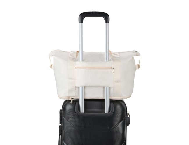 Muito mais espaço e praticidade em uma só bolsa esportiva para carregar equipamentos, calçados e roupas até academias, quadras, estúdios ou viagens em geral. Feita em poliéster resistente à água, ela possui um compartimento expansível que, quando aberto em zíper, aumenta a capacidade máxima da bolsa para até 36 litros. Além do amplo espaço interno com direito a bolso para organização de objetos menores, também apresenta bolso externo com área para o encaixe de alças de malas de viagem e, com isso, é possível criar combinações práticas em deslocamentos.