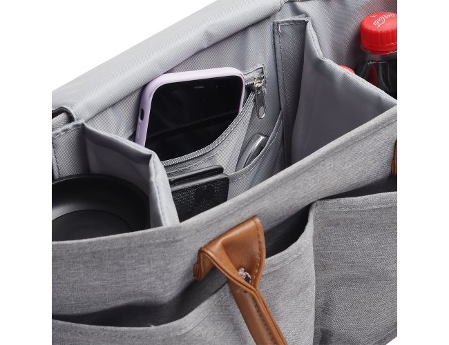 Nossa bolsa multifuncional de 8 litros é projetada para se adaptar a diferentes ocasiões. Produzida em poliéster com tecido resistente à água, possui alças em couro sintético que combinam com um design moderno e prático, ideal para guardar diversos itens, como os de bebê, trabalho e afins. A parte interna oferece um espaço amplo e adaptável, com duas divisórias contendo velcro que permitem criar até três compartimentos separados. Além disso, possui um bolso com zíper e três bolsos internos, sendo um deles com elástico para facilitar o acesso. O fechamento da bolsa é feito por um compartimento que protege a parte central. Para torná-la ainda mais funcional, conta com um compartimento térmico integrado, ajudando a manter a bebida na temperatura ideal por mais tempo. Na parte externa, há cinco bolsos adicionais, além de um engate de nylon com fechamento em velcro, perfeito para prender em carrinhos de bebê ou onde desejar. Suas alças podem ser usadas no ombro ou nas mãos. Além disso, conta com uma alça extra ajustável e removível, oferecendo mais versatilidade sempre que necessário. Essa bolsa é uma excelente opção de brinde, unindo modernidade e praticidade.