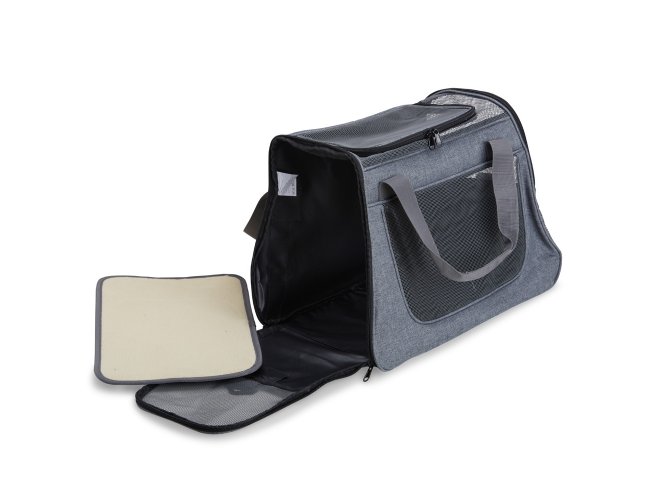 Bolsa para transporte de pets, confeccionada em tecido Oxford com bolso lateral. Seu tapete dupla face, com uma camada aveludada, foi projetado para proporcionar o máximo conforto ao pet. Equipada com telas respiráveis em nylon, esta bolsa apresenta uma abertura superior e duas aberturas laterais com faixas refletivas, sendo uma delas com abertura completa, permitindo uma experiência de transporte arejada, com entrada e saída prática para o pet. As alças de mão, estrategicamente equipadas com suporte para junção, garantem conforto durante o transporte manual, enquanto a alça transversal proporciona um transporte ergonômico com distribuição mais eficiente do peso.