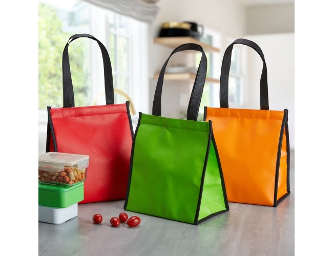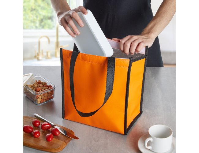 Carregue alimentos e bebidas com a temperatura conservada com esta bolsa térmica prática e estilosa. Feita em TNT impermeável, com revestimento interno antivazamento em alumínio e capacidade máxima de 12 litros, ela é uma escolha versátil para transportar marmitas, lanches, frutas, legumes, sucos ou refrigerantes até o trabalho, escola, piquenique e demais ambientes de maneira prática com sua alça resistente. Além disso, a bolsa também conta com fechamento e velcro.