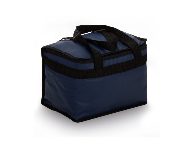 Bolsa térmica 13 litros confeccionada em bagum sintético, contém revestimento interno em polietileno atóxico soldado (não vaza) e alça para mãos em polipropileno.