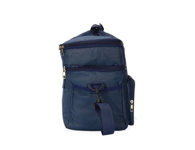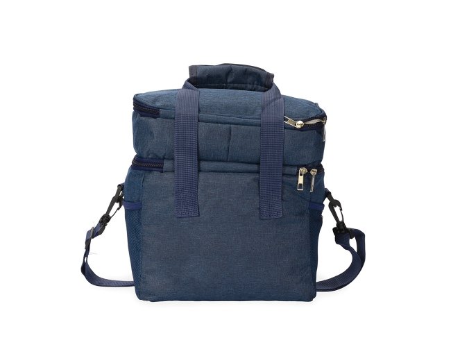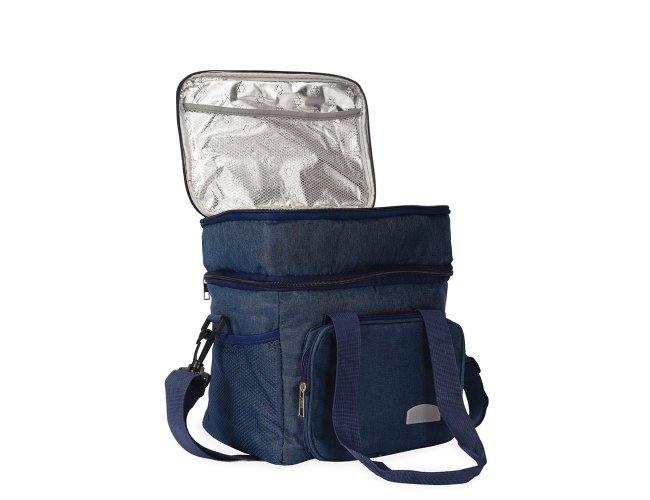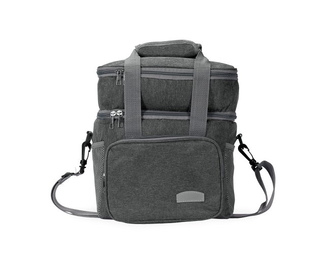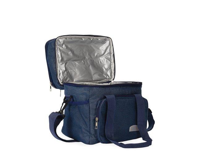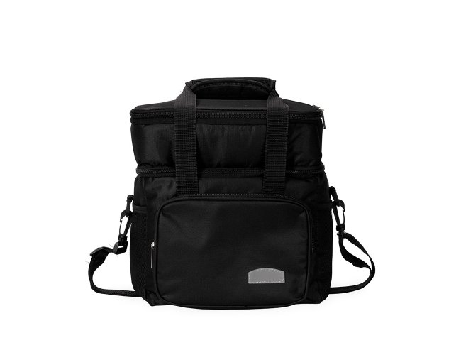 Bolsa térmica em Oxford resistente à água e capacidade máxima de 15 litros. Possui revestimento interno em PEVA, ideal para conservar a temperatura de alimentos e bebidas por mais tempo. Sua tampa apresenta revestimento térmico em folha de alumínio. Além disso, possui compartimento frontal externo e mais dois bolsos laterais em tela de nylon com elástico. Apresenta alças de mão com suporte de juntura e alça transversal removível.