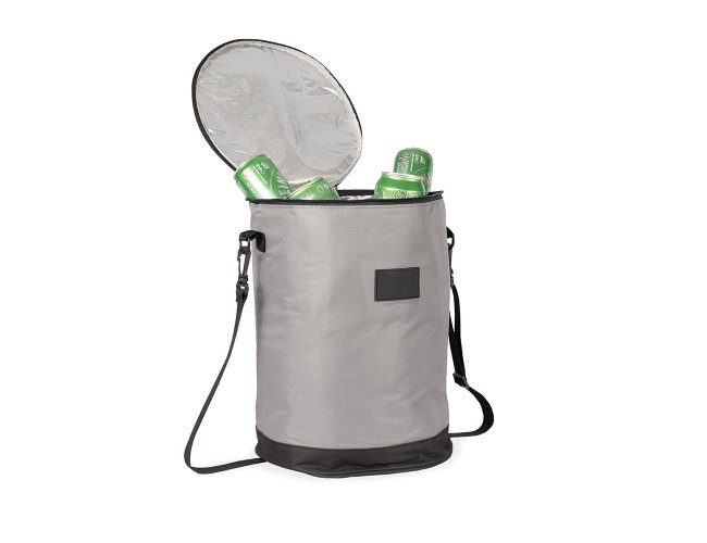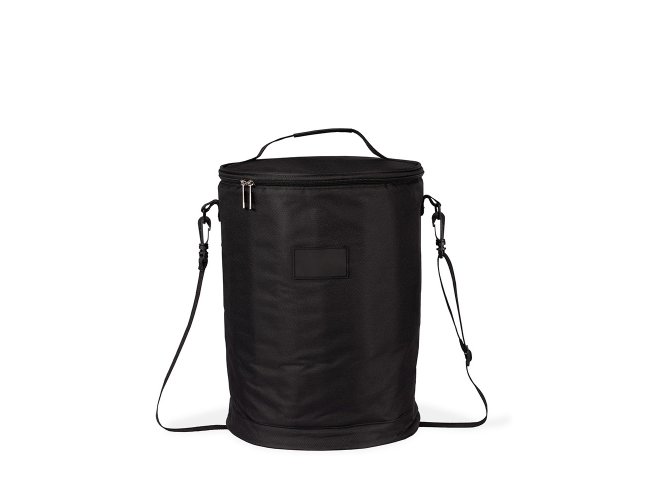 Bolsa térmica em formato cilíndrico com capacidade de até 25 litros. Confeccionada em Oxford, conta com revestimento térmico em folha de alumínio que ajuda a manter a temperatura de alimentos e bebidas conservados por mais tempo em seu amplo compartimento interno. Possui alça de ombro ajustável e removível, além de outra alça fixa localizada na tampa.