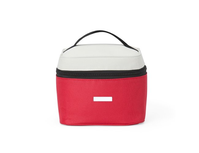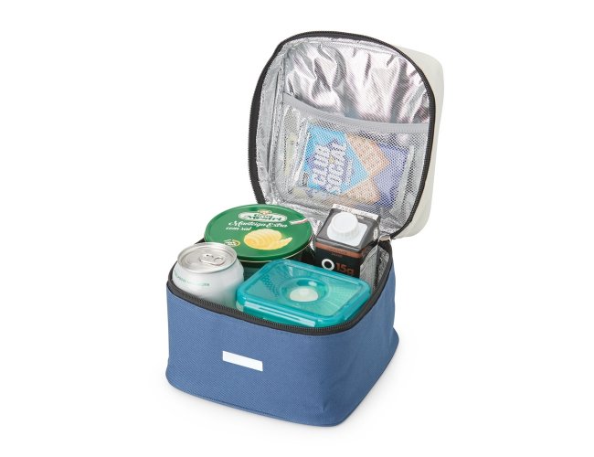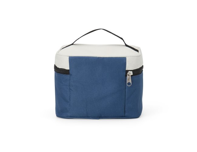 Bolsa térmica de nylon 5 litros. Possui bolso telado e acompanha plaquinha metálica.