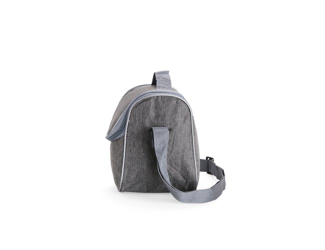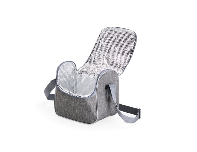 Bolsa térmica com capacidade de 6 litros. Feita em Oxford resistente à água, possui abertura frontal em zíper, além de revestimento interno em alumínio EPE, que ajuda a conservar a temperatura de alimentos e bebidas por mais tempo. Conta com uma alça superior e uma alça transversal fixas.