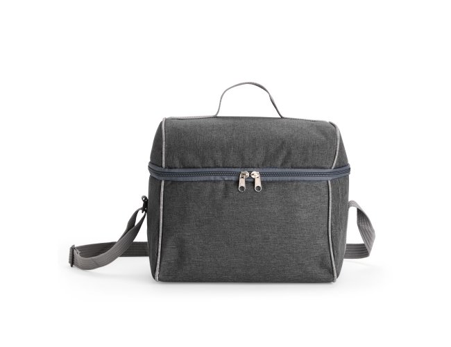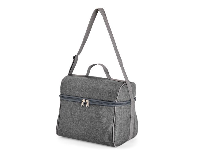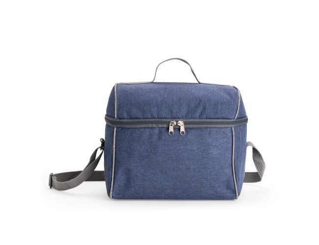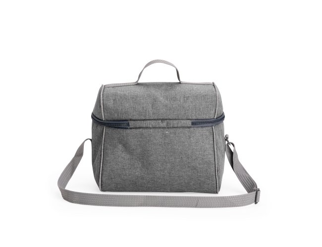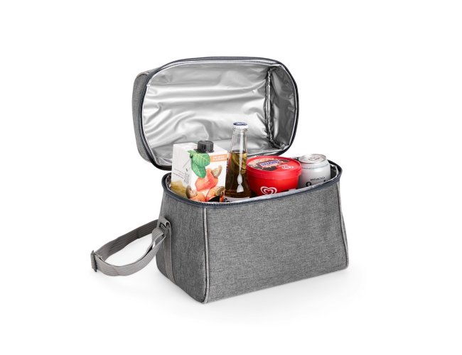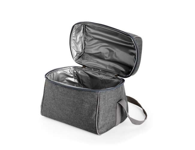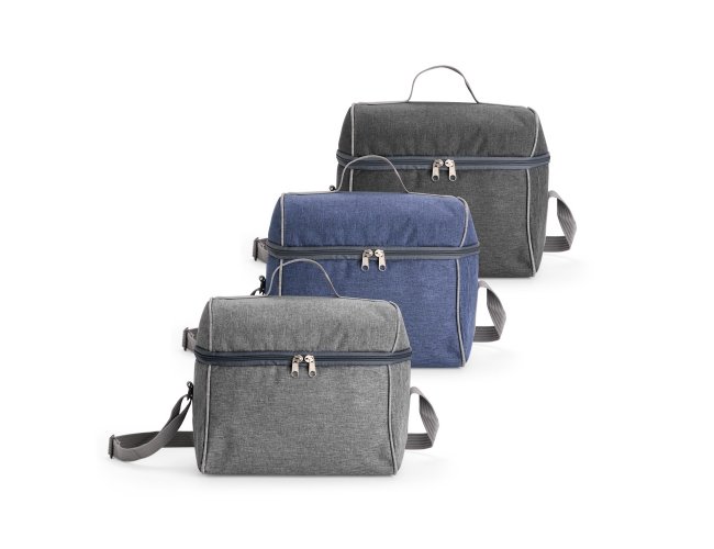 Bolsa térmica confeccionada em poliéster resistente à água, com capacidade máxima de 14 litros e fechamento em zíper. Possui revestimento térmico interno em PVC laminado prata verniz, que ajuda a conservar a temperatura de alimentos e bebidas por mais tempo. Além disso, conta com uma alça fixa na tampa e outra transversal ajustável.