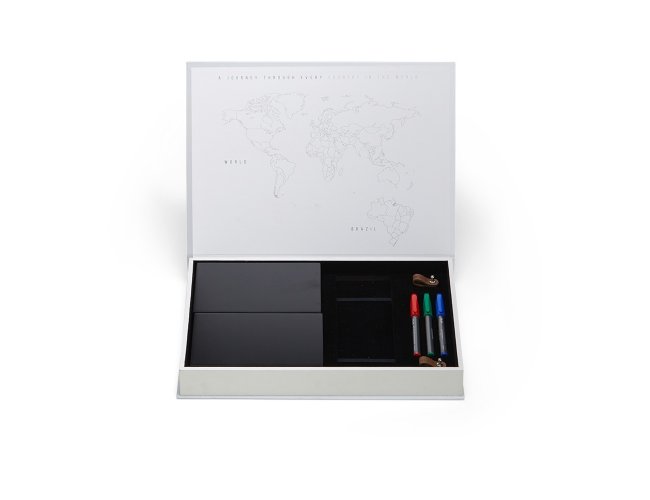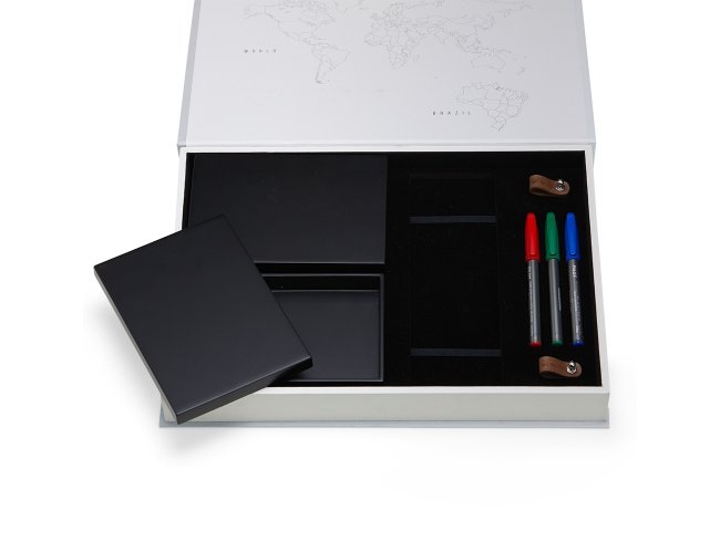 Box conceito travel book, uma verdadeira joia para pessoas exploradoras que desejam preservar e eternizar suas memórias de viagens. Projetado em MDF com um interior aveludado, é mais do que um simples organizador de documentos; é um verdadeiro santuário para suas aventuras pelo mundo. O box oferece um espaço especial para guardar seu passaporte, ingressos, passagens e outros itens essenciais. Cada detalhe foi projetado para garantir a segurança e a organização de seus documentos de viagem. O box book de viagens é um objeto de beleza e inspiração. Um mapa-múndi cuidadosamente ilustrado adorna a parte interna do estojo, permitindo traçar suas rotas e marcar os destinos visitados. Para adicionar um toque pessoal e artístico, três marcadores Pilot 2.0mm permanentes são inclusos no conjunto, permitindo que você pinte e personalize os locais explorados, criando uma obra de arte única que representa suas experiências. O box também possui um bloco de anotações exclusivo, onde você pode registrar os momentos especiais, as descobertas e as impressões de suas viagens. Cada página em branco é uma tela em branco para você expressar sua criatividade e guardar preciosas lembranças.