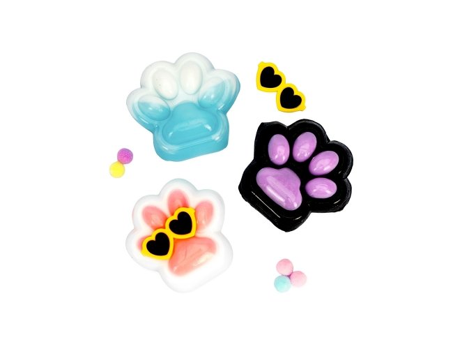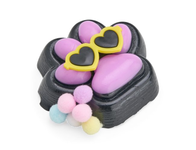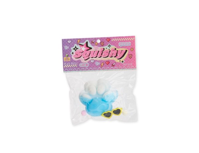Brinquedo apertável antiestresse em formato de pata estilizada. Produzido em borracha termoplástica de textura lisa e macia, que adere facilmente a superfícies planas. Acompanha um pequeno óculos em plástico e bolinhas de pelúcia para decoração.