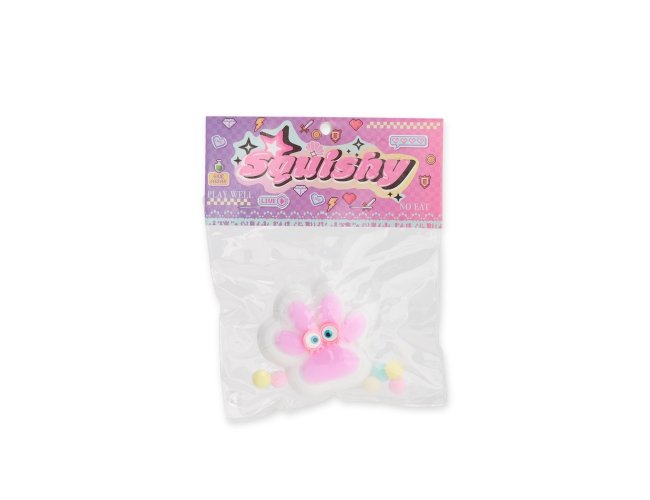 Brinquedo apertável antiestresse em formato de pata estilizada. Produzido em borracha termoplástica com superfície lisa e macia, adere facilmente a superfícies planas e acompanha bolinhas de pelúcia para decoração.