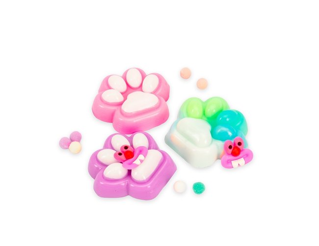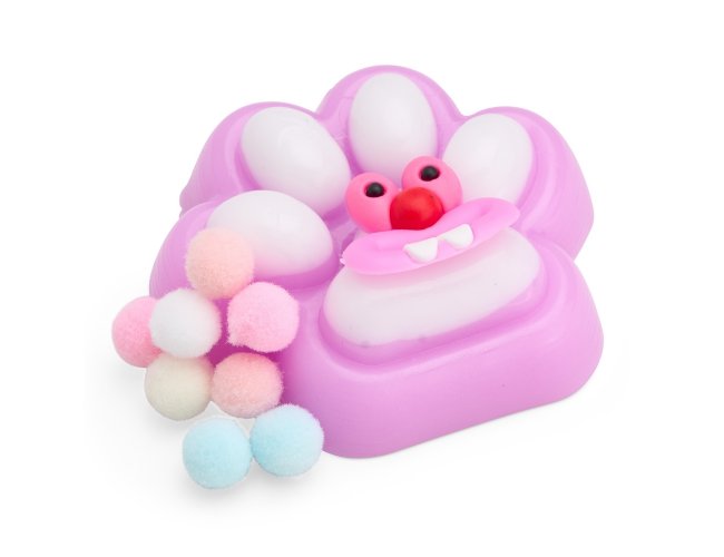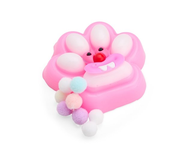 Brinquedo apertável antiestresse em formato de pata estilizada. Produzido em borracha termoplástica de textura lisa e macia, que adere facilmente a superfícies planas. Acompanha itens decorativos em pelúcia e plástico.