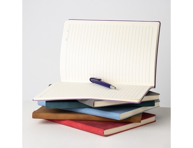 Caderneta B5 com capa feita em PU. Contém aproximadamente 120 folhas marfim com pauta e marcação do número de linhas em cada folha. Seja para anotações do dia a dia, estudos, ou para soltar a criatividade, este caderno é o parceiro ideal.