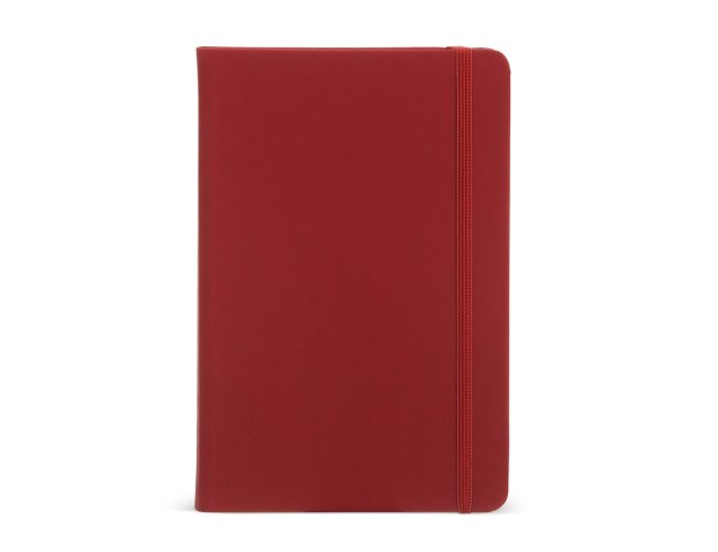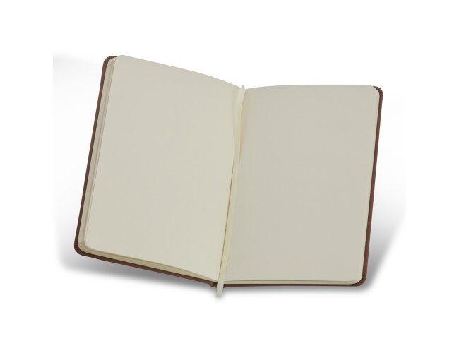 Caderneta em couro sintético emborrachado, possui marca página em cetim e elástico para lacre. Contém aproximadamente 80 folhas marfim sem pauta.