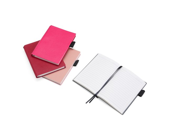 A nossa caderneta padrão A6 foi pensada para quem valoriza praticidade e toque de elegância durante as suas anotações. Com capa flexível em couro sintético, ela oferece resistência e sofisticação. Possui aproximadamente 96 folhas com pauta na cor marfim, perfeitas para fazer registros diários eficientes. Conta com duas fitas de cetim como marcadores de página que garantem um acesso fácil e rápido às páginas, enquanto o suporte para caneta, integrado à capa, proporciona ainda mais funcionalidade.