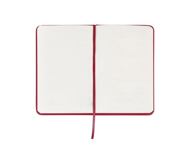 Caderneta de couro sintético com elástico para lacre e marcador de página em cetim, contém 80 folhas sem pauta.