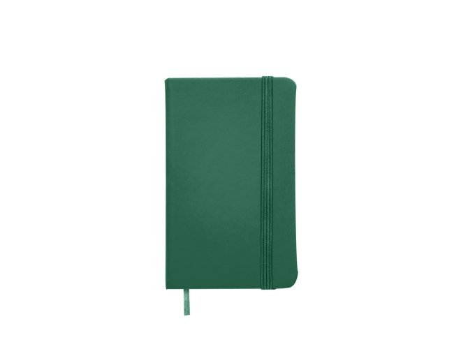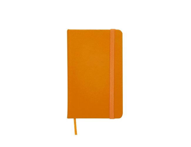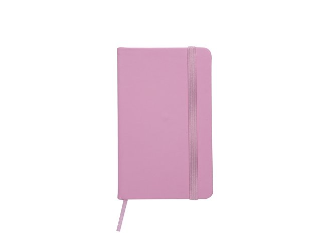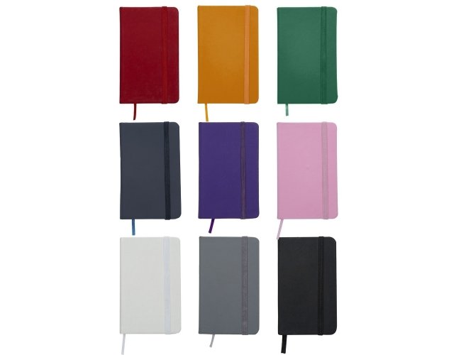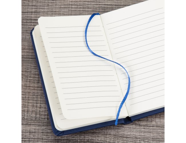 Caderneta emborrachada com elástico para lacre e marcador de página em cetim.