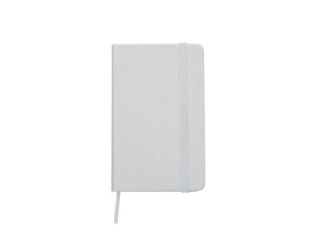 Caderneta emborrachada com elástico para lacre e marcador de página em cetim, contém aproximadamente 84 folhas sem pauta na cor marfim.