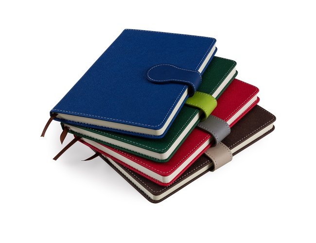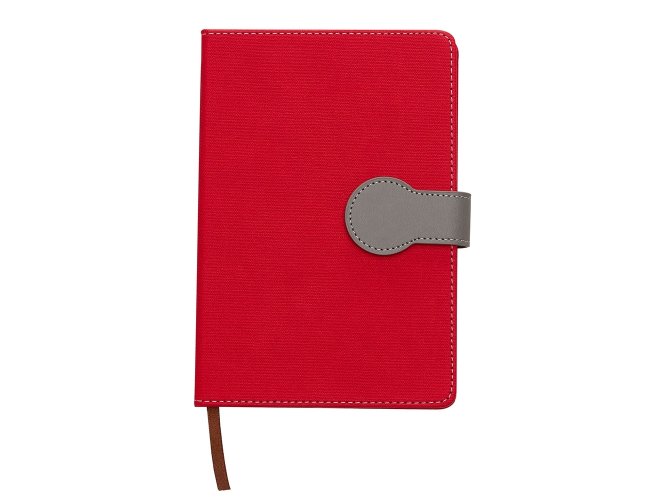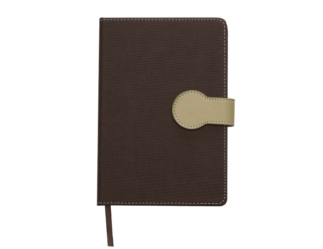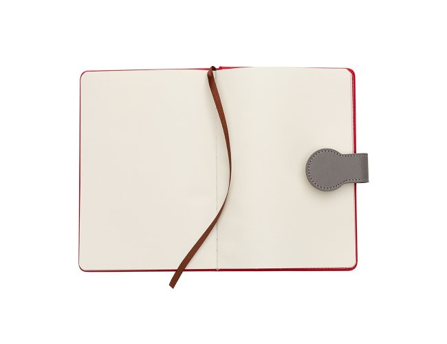 Caderneta sintética com fechamento imantado, contém aproximadamente 96 folhas amarelas sem pauta e marcador de página em cetim.