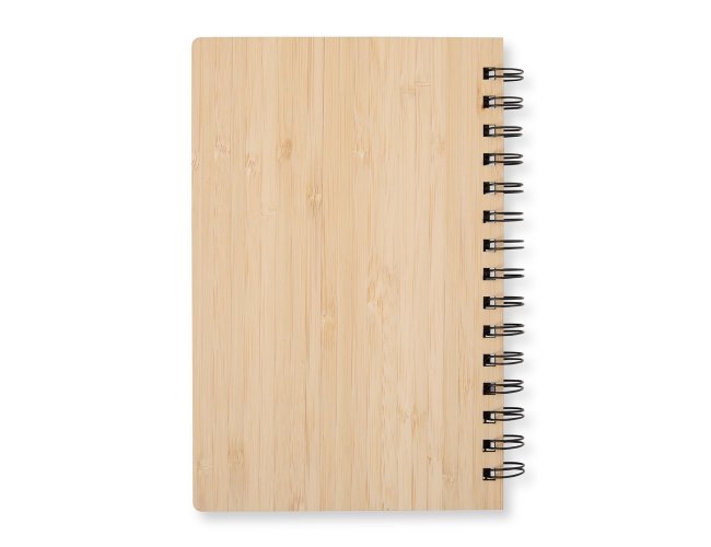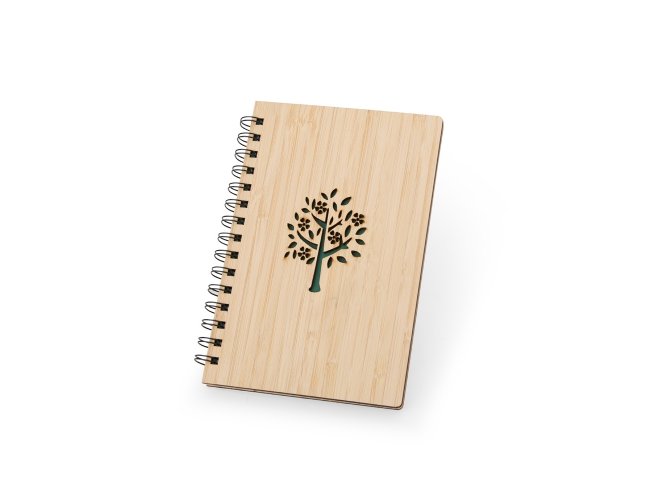 Com design sustentável, este caderno em bambu conta com aproximadamente 69 folhas brancas pautadas. Sua capa rígida com arte vazada ganha destaque com a "folha de guarda" verde, enquanto o espiral metálico garante resistência e praticidade durante o uso.