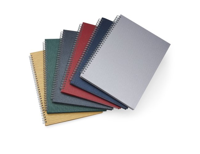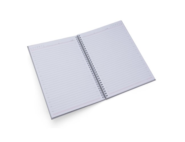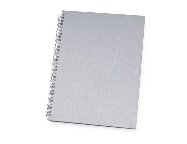 Caderno grande percalux com pintura metalizada e wire-o prata. Miolo permanente e folhas para preenchimento de dados pessoais, comerciais e contatos. OBS.: PEDIDOS APENAS MÚLTIPLOS DE 10 PEÇAS!