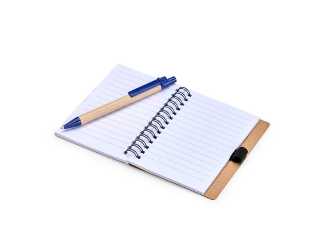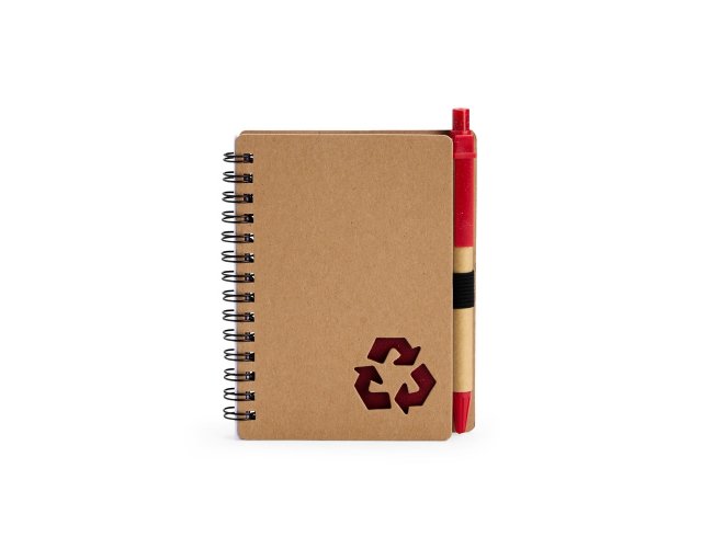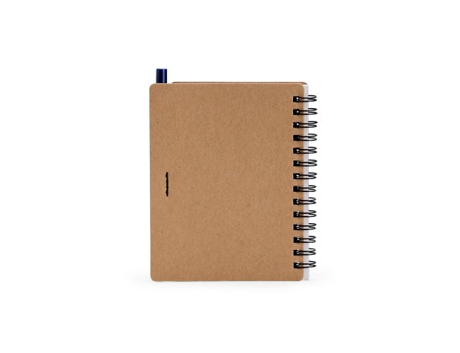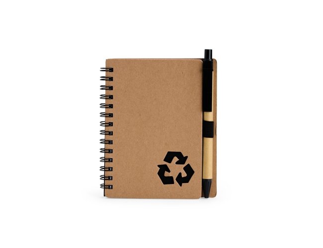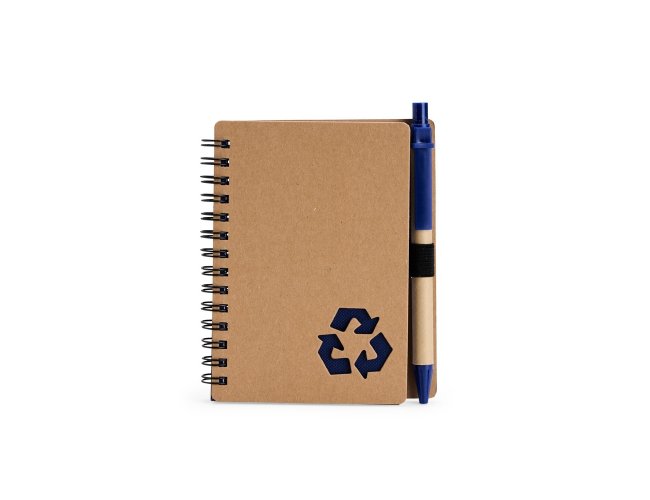 Este caderno é uma ótima opção para fazer anotações sem abrir mão da sustentabilidade. Com capa produzida em papelão com detalhe vazado que remete ao símbolo da reciclagem, ele conta com encadernação Wire-O e aproximadamente 70 folhas brancas pautadas, trazendo muitas possibilidades para realizar todos os tipos de anotações durante um dia em movimento. O caderno acompanha uma caneta esferográfica de carga azul de 1,0 mm com corpo em papelão e clip, acionamento em clique e ponteira em plástico. A capa contém um elástico para abrigar a caneta junto ao caderno.
