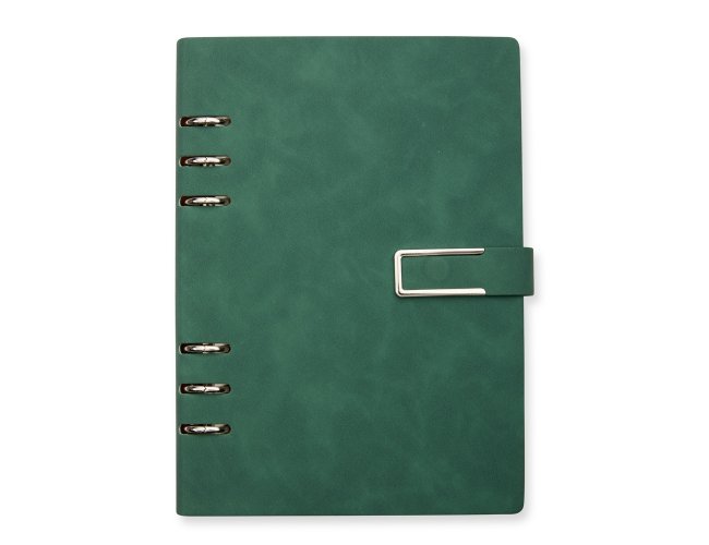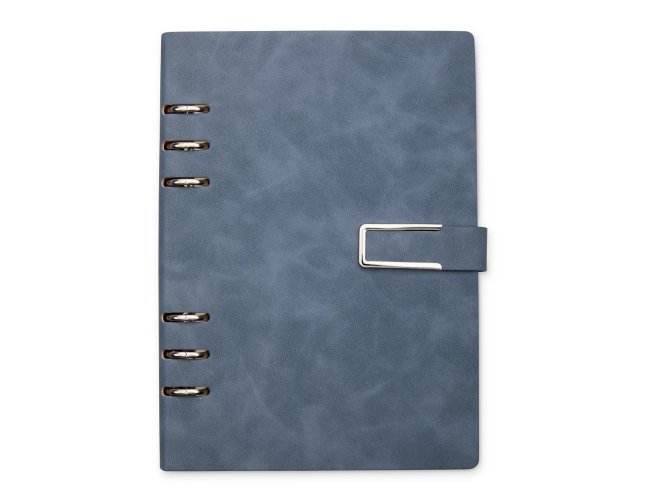 Organize todas as anotações de forma prática com o nosso caderno fichário em PU. Com um design super elegante, ele tem capa dura no formato A5 e um fechamento de fivela imantado que protege as 119 folhas em papel marfim. Os seis anéis permitem retirar e reorganizar as folhas sempre que precisarem, deixando tudo do seu jeito. E para completar, a primeira folha traz um espaço especial para dados pessoais. Esse caderno fichário é a escolha perfeita para manter tudo organizado e com muita sofisticação.