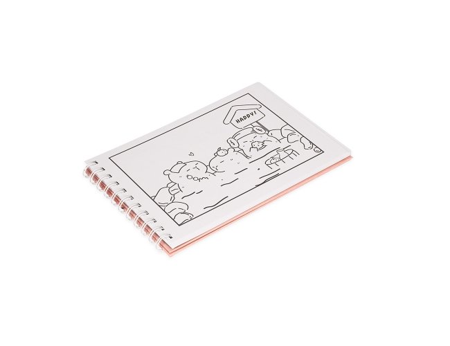 Caderno de colorir de capa dura com laminação holográfica e encadernação Wire-O. Possui aproximadamente 48 folhas com ilustrações de capivaras e outros animais em momentos leves e divertidos. Acompanha uma folha protetora destacável em acetato.