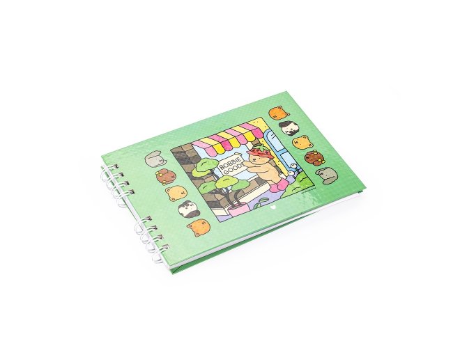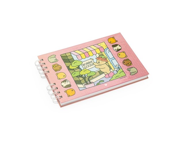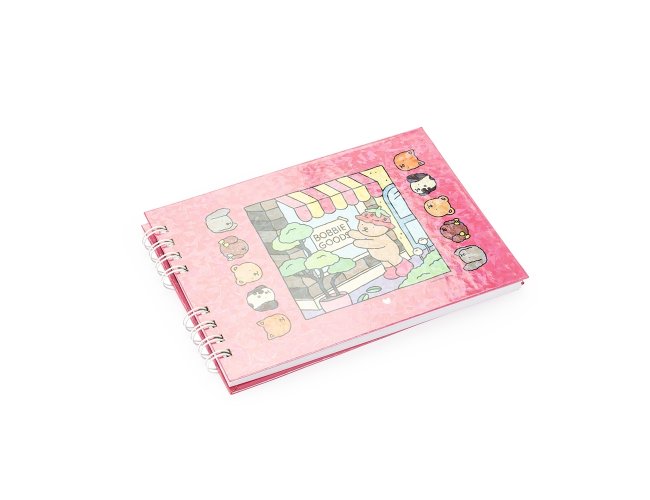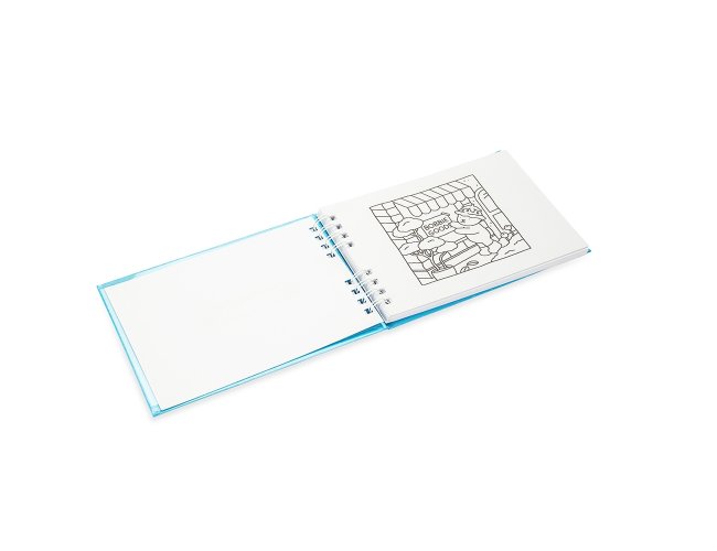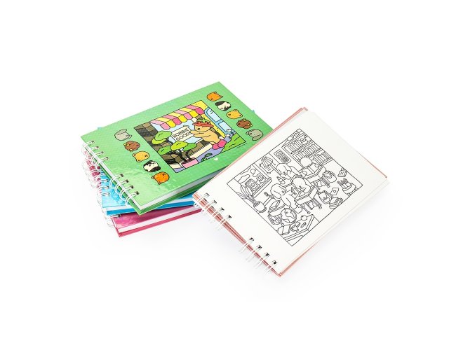 Caderno de colorir de capa dura com laminação holográfica e encadernação Wire-O. Possui aproximadamente 48 folhas com ilustrações de animais em cenas leves e descontraídas. Acompanha folha protetora destacável em acetato.