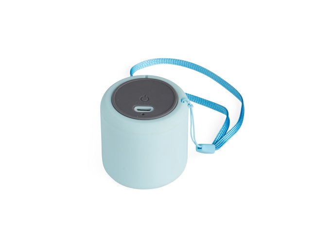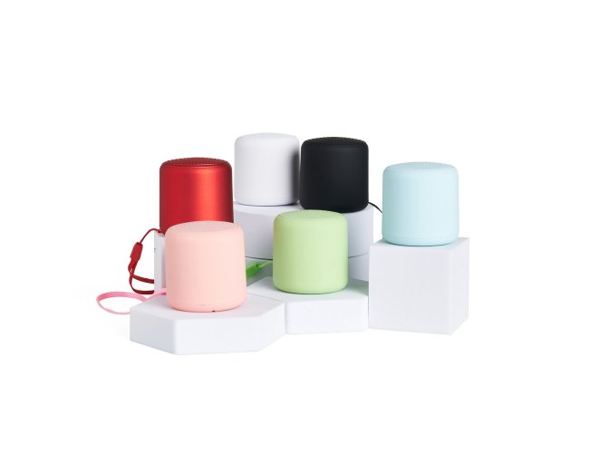 Caixa de som bluetooth com conectividade TWS, material plástico. A tecnologia TWS sincroniza duas caixas de som em uma só, aumentando a potência sonora. Contém microfone embutido para atendimento de chamadas telefônicas. Base de silicone antiderrapante. Acompanha cordão de nylon e cabo USB-V8.