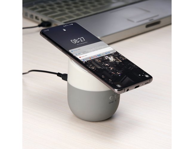 Posso deixar a playlist tocando enquanto carrego o smartphone? Com esta caixinha, você pode! Para desfrutar do carregamento por indução (sem fio) é fundamental que o celular possua a tecnologia QI ? desta maneira é possível carregar o celular posicionando-o sob o carregador, sendo necessário apenas conectar o carregador à uma fonte de energia (USB ou diretamente na tomada). A caixinha funciona nos modos bluetooth e cartão TF (microSD). Acompanha cabo USB. Ela é produzida em material plástico, com antiderrapantes emborrachados na parte inferior, e na área de indução.