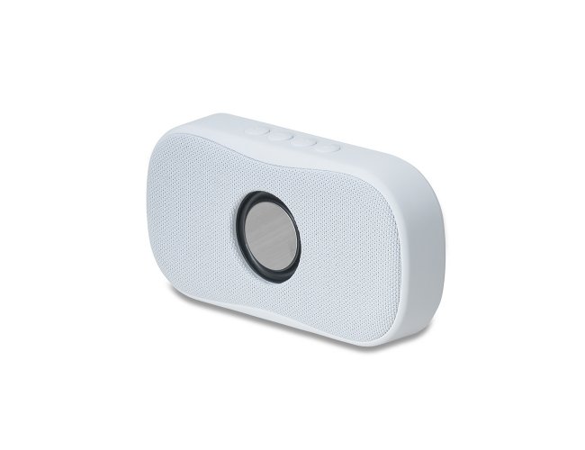 Caixa de som plástica multimídia com efeito visual, são geradas vibrações no alto-falante ao reproduzir músicas com batidas graves. Operante nos modos: bluetooth, rádio FM, cartão microSD e atendimento de chamadas. Contém plaquinha metálica fixa na área frontal e base com borrachas antiderrapantes. Acompanha cabo USB.