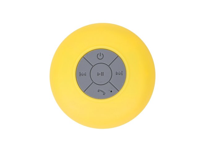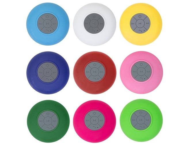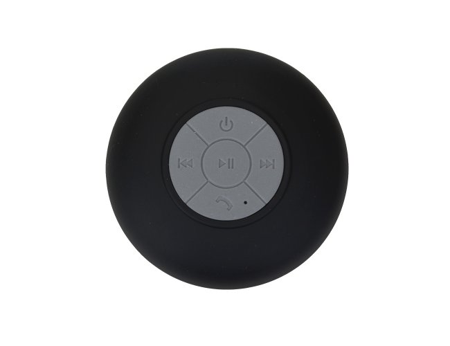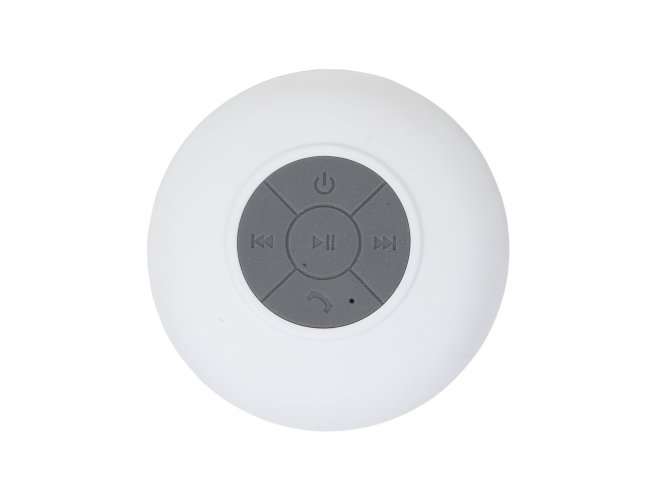 Caixa de Som Multimídia à prova D?Água emborrachada com ventosa(pode ser removida). Possui play/pause no centro e botão com desenho de telefone deve ser apertado para atender ligações. Compátivel com Iphone, Ipad, Ipod, aparelhos de celular e tablets. Acompanha cabo.