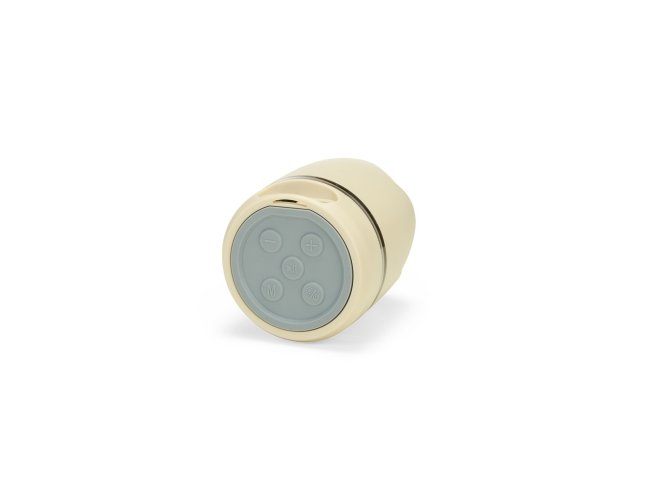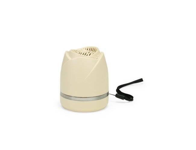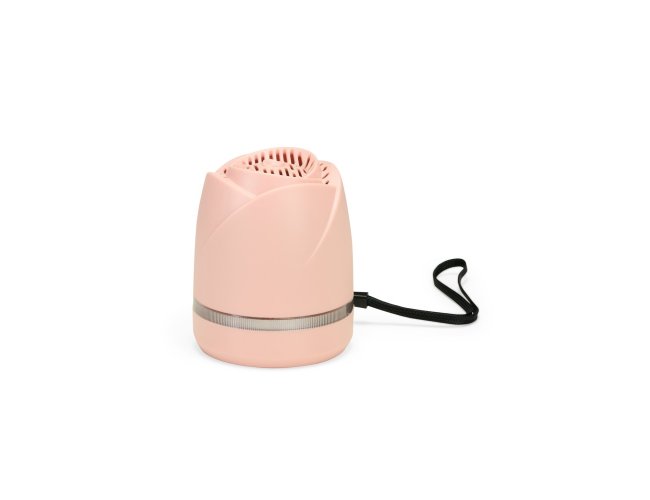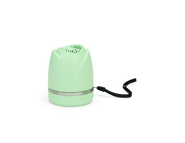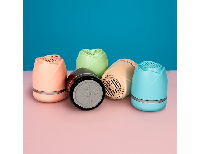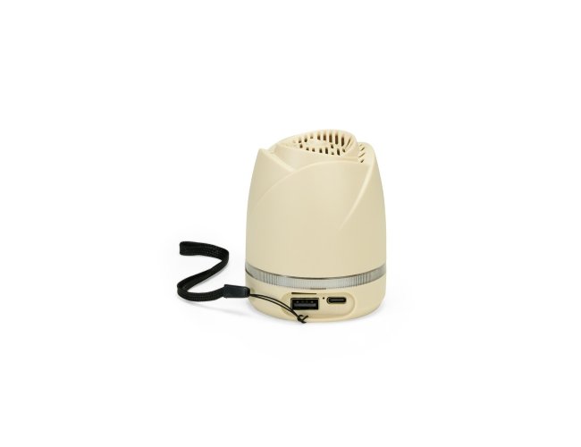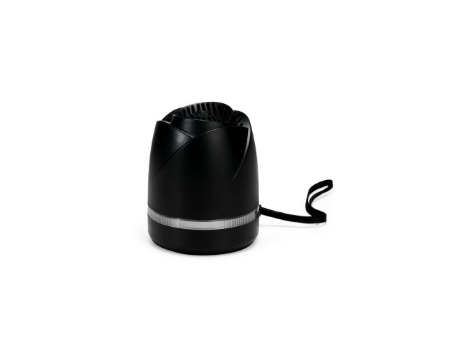 Caixa de som multimídia sem fio em plástico e iluminação colorida em LED. Possui conexão via Bluetooth, sintonia para rádio FM, painel com botões emborrachados e porta USB-C para carregamento. Dispõe ainda de porta USB-A e entrada para cartão MicroSD, permitindo reprodução de músicas em MP3. Acompanha cabo USB-C e alça de nylon para transporte.