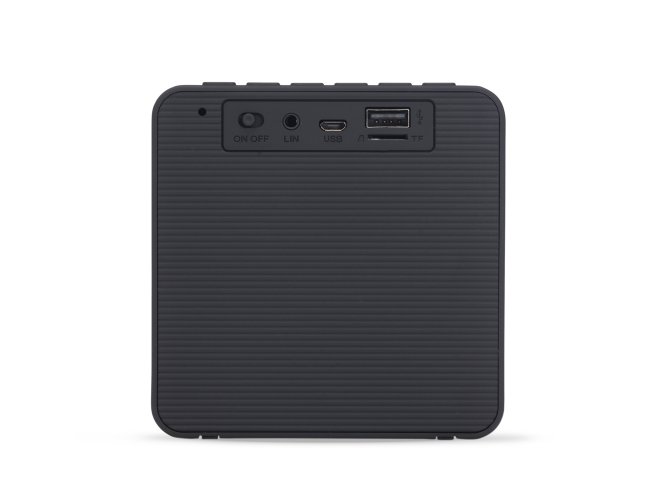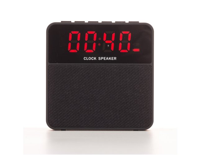 Caixa de Som Multimídia com relógio digital. Material emborrachado com display superior frontal, tela de proteção dos falantes em tecido, parte inferior com borrachas anti-deslizantes. Possui botões de Relógio/Alarme; Telefone/Atender chamadas; Mode; - retroceder/diminuir; + avançar/aumentar; Play/Pause/Troca; Microfone; Botão on/off; Entrada auxiliar P2; Entrada DC 5V; Entrada USB e Entrada TF (cartão MicroSD). Acompanha cabo USB e manual de instruções em chinês/inglês.