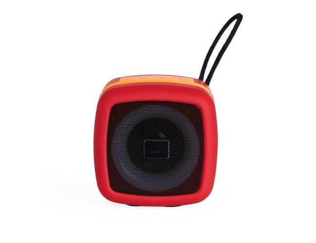 Caixa de som multimídia com conectividade TWS, luzes RGB e suporte para celular. Material plástico com base antiderrapante. Operante nos modos bluetooth, rádio FM, auxiliar P2, pen drive e cartão TF (MicroSD). A tecnologia TWS sincroniza duas caixas de som em uma só, aumentando a potência sonora. Acompanha cordão de nylon e cabo USB-V8.