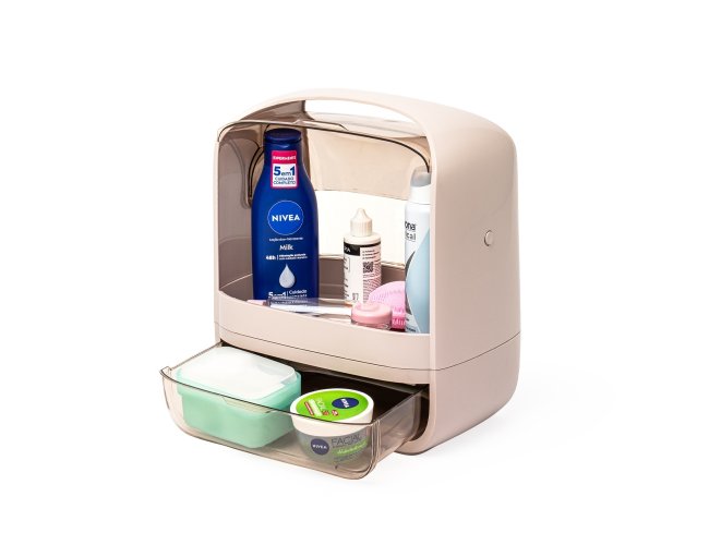 O segredo para manter os cosméticos organizados e seguros! A caixa organizadora para maquiagens e cosméticos é prática e eficiente. Feita em plástico resistente com tampas de acrílico, ela protege os itens contra poeira e umidade, garantindo que tudo fique sempre seguro e preservado. Com um compartimento principal espaçoso e uma gaveta extra, é possível armazenar tudo de forma organizada. Além disso, a alça de transporte facilita levar a caixa para qualquer lugar, transformando qualquer ambiente no espaço perfeito para a rotina de beleza.