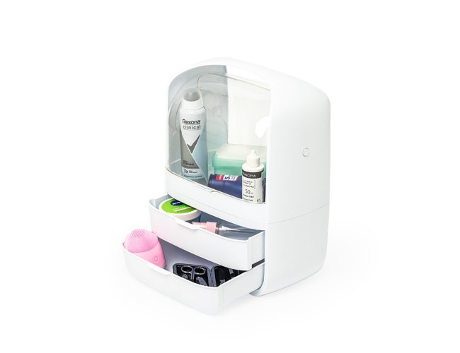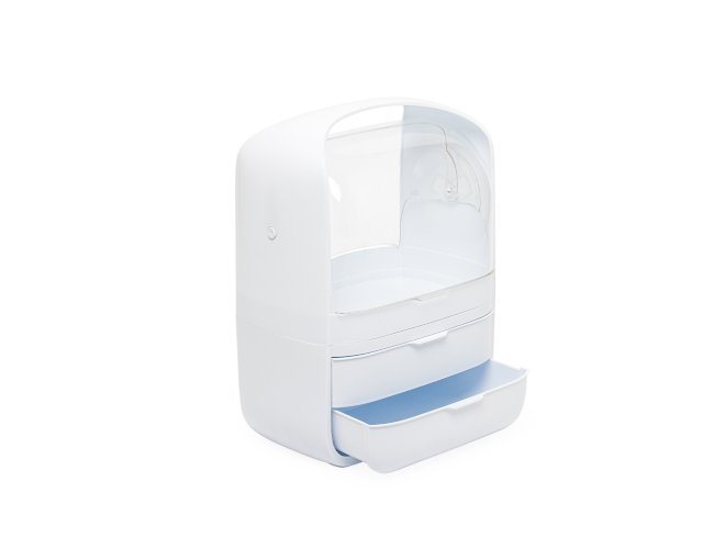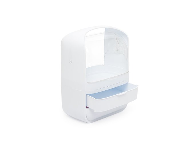 A caixa organizadora para maquiagens e cosméticos é prática e eficiente. Feita em plástico resistente com tampas de acrílico, ela protege os itens contra poeira e umidade, garantindo que tudo fique sempre seguro e preservado. Com um compartimento principal espaçoso e duas gavetas extras, é possível armazenar tudo de forma organizada. Além disso, a alça de transporte facilita levar a caixa para qualquer lugar, transformando qualquer ambiente no espaço perfeito para a rotina de beleza.