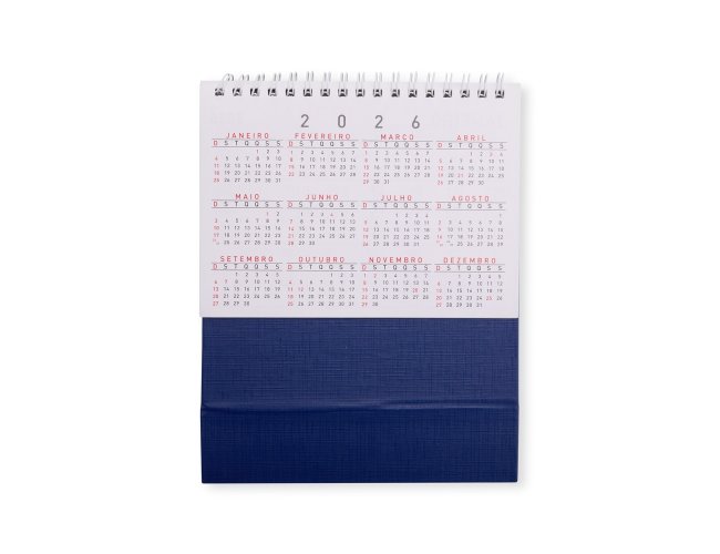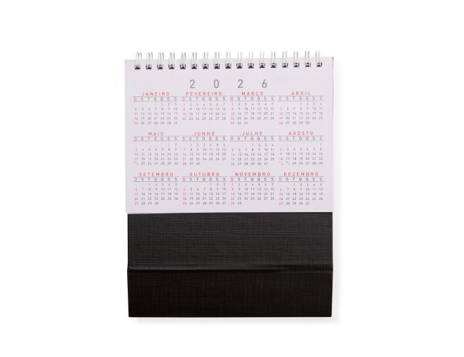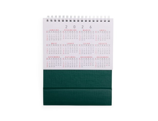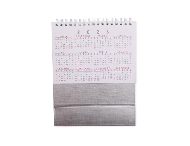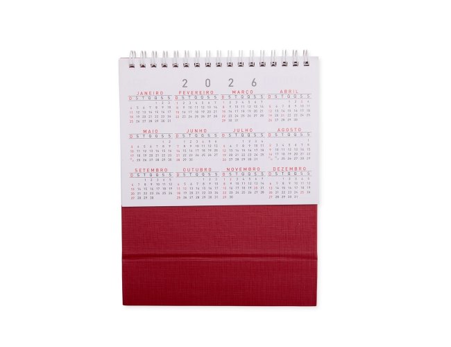 Calendário de mesa 2026 em papel couche 115g, base percalux.