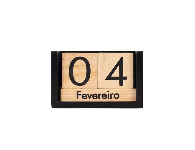 Um calendário permanente em madeira que oferece minimalismo e elegância para qualquer ambiente. Dividido em um par de cubos com números dos dias do mês e outros três retângulos com os nomes dos meses, este é um calendário de montagem fácil e intuitiva através de seus blocos, contribuindo para uma rotina mais organizada enquanto serve como um elegante ornamento para mesas, estantes, prateleiras e outros espaços abertos.