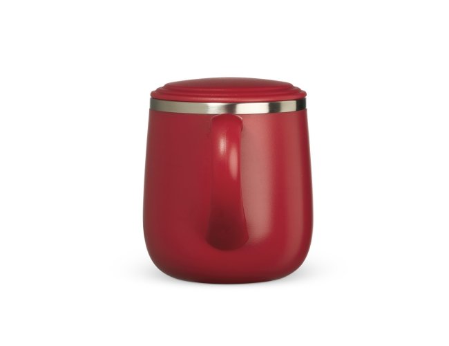 Caneca 370ml plástica com parede dupla em Inox, contém tampa plástica para vedação e base com EVA antiderrapante.